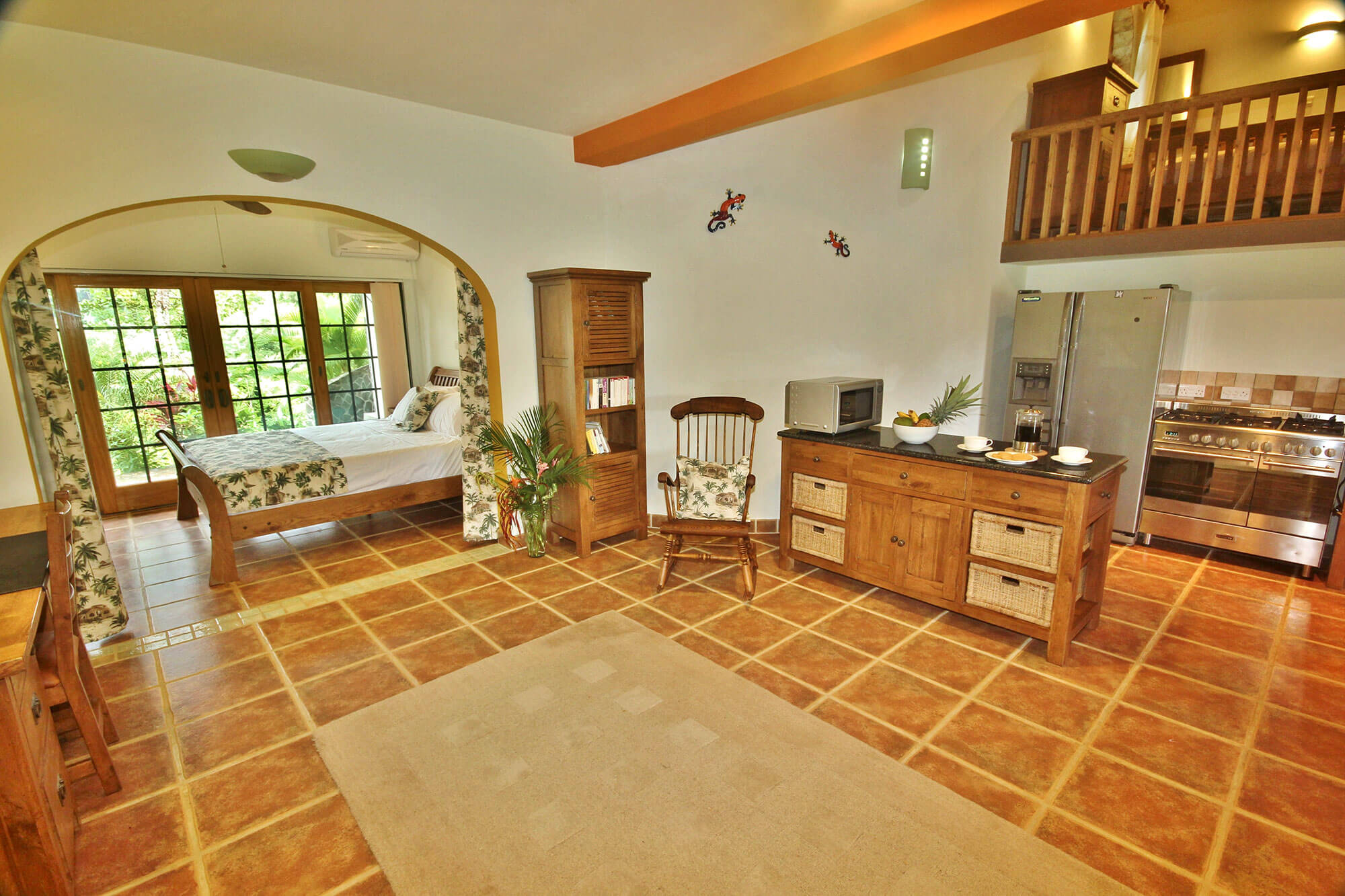 The Pool House is the only 2 bedroomed accommodation at Tropical Hideaway and has a fully fitted kitchen with a full-size range cooker and a large American style fridge freezer. People who love to cook always love it here. We also find that couples and friends who prefer separate bedrooms also choose the Pool House as their preferred accommodation.