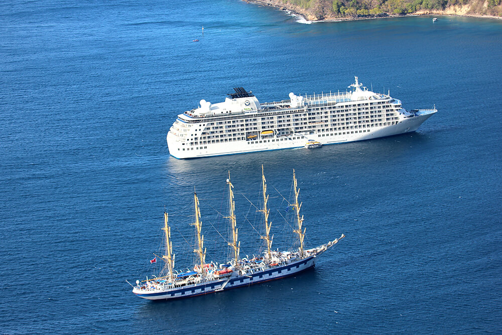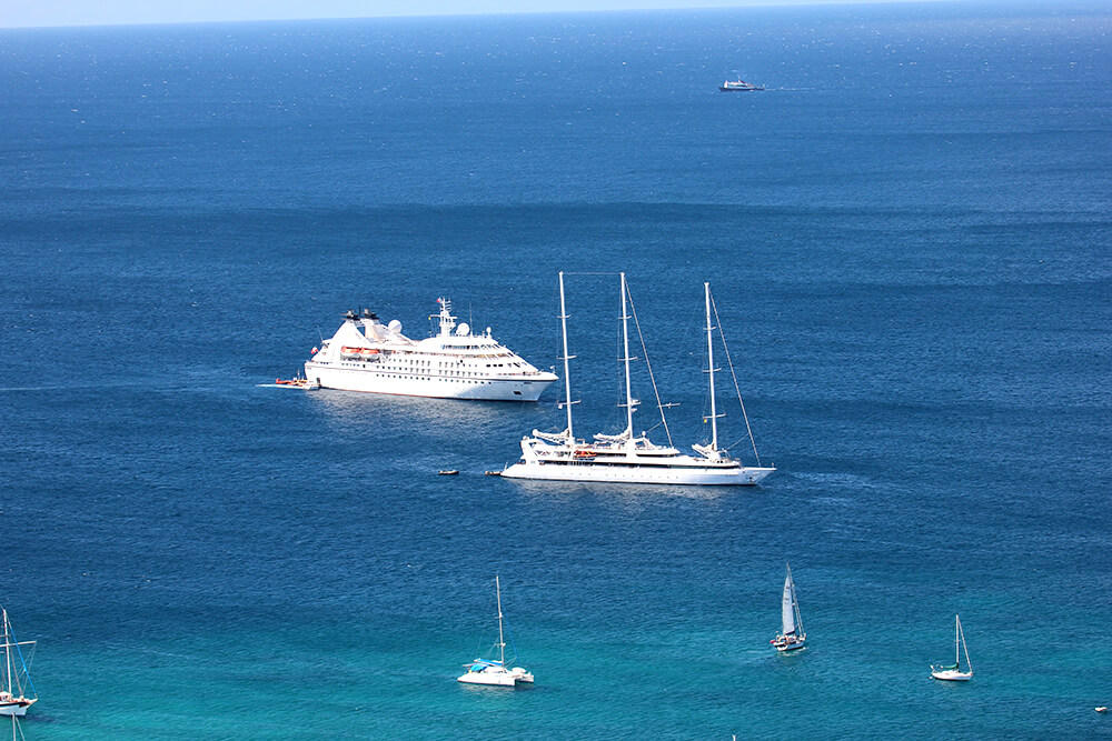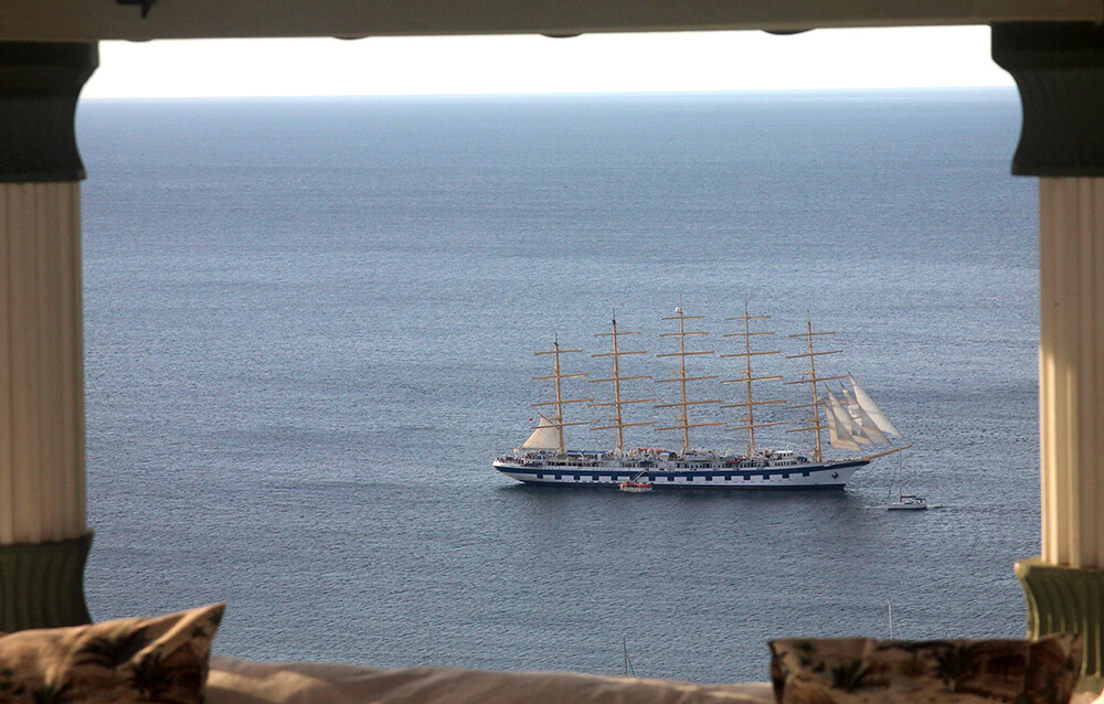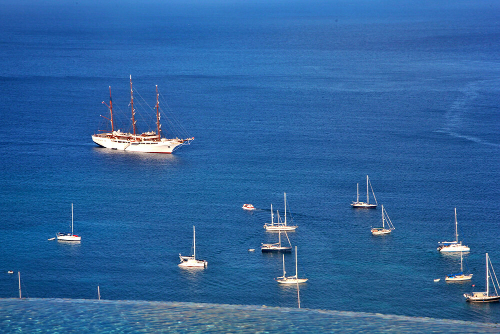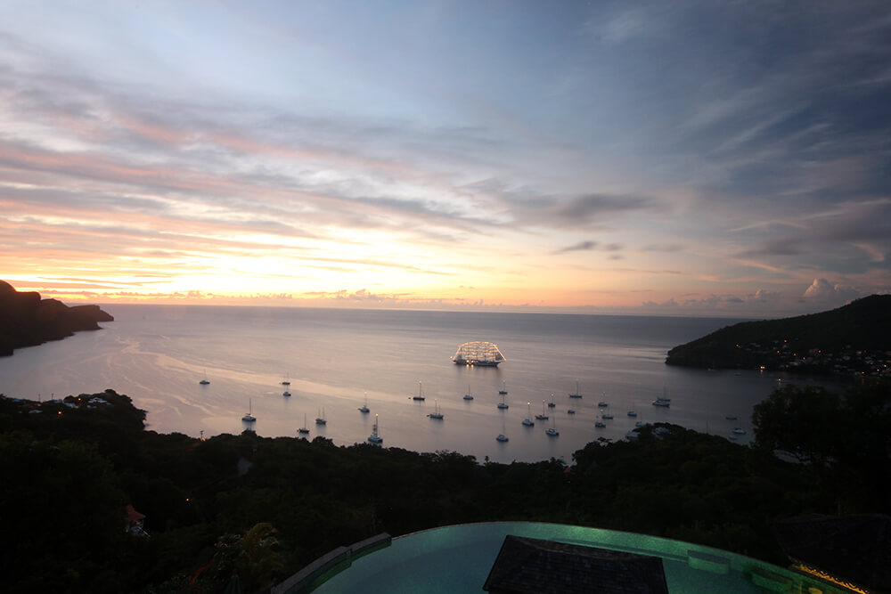 During the ‘busy season’ November to April we are sometimes visited by small cruise ships. Two of the most spectacular being the Royal Clipper, (the largest 5 masted sailing ship in the World) and the legendary Sea Cloud windjammers. They light up the bay at night and literally look as though they are anchored right on the edge of the Infinity Pool. They look spectacular and create a focal point for anyone looking over the bay after dark.